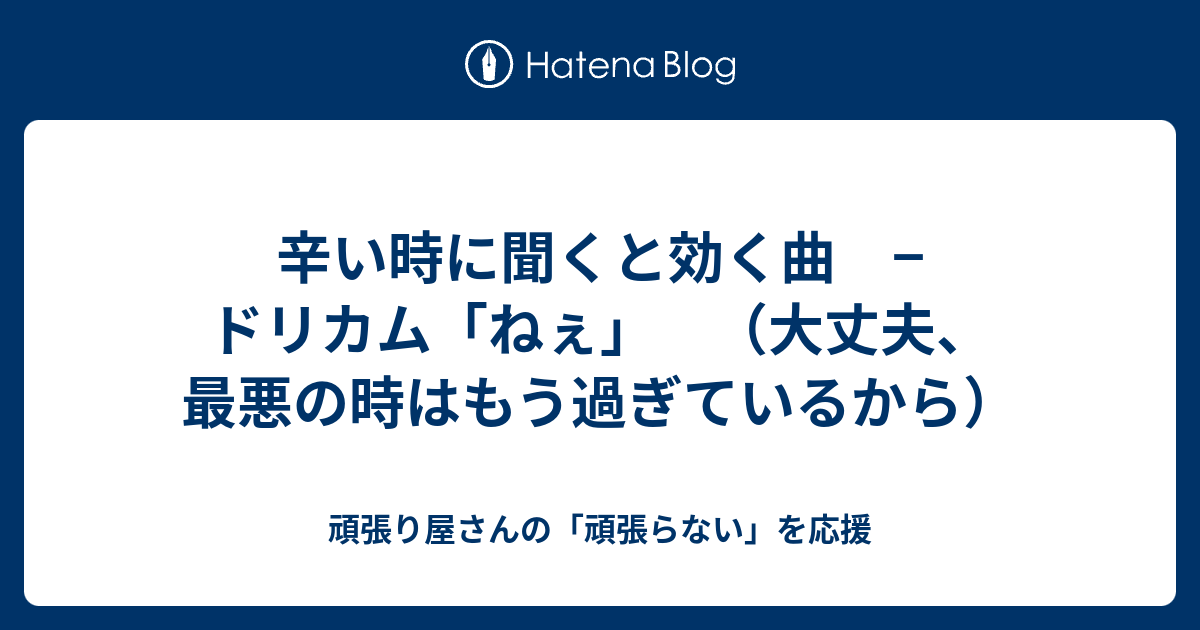 辛い時に聞くと効く曲 ドリカム ねぇ 大丈夫 最悪の時はもう過ぎているから 頑張り屋さんの 頑張らない を応援
